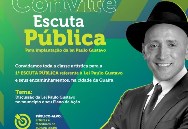 “Convidamos toda a classe artística para essa primeira escuta pública, para ouvir sugestões dos nossos artistas, tirar dúvidas e discutir o plano de ação para a nossa cidade. Acredito que juntos podemos fazer muito mais pela nossa cultura guairense através desta verba da Lei Paulo Gustavo”, afirma a chefe do departamento, Deise Garcia.